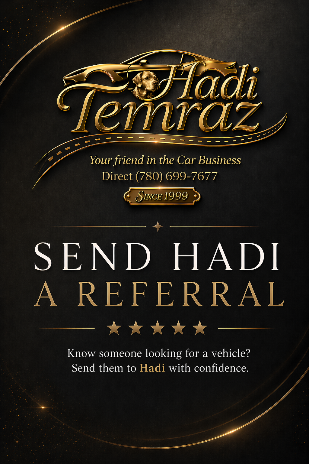 Referrals mean everything to Hadi Temraz — and when your referral completes an eligible vehicle purchase, you may qualify for referral rewards, milestone benefits, and special appreciation opportunities.